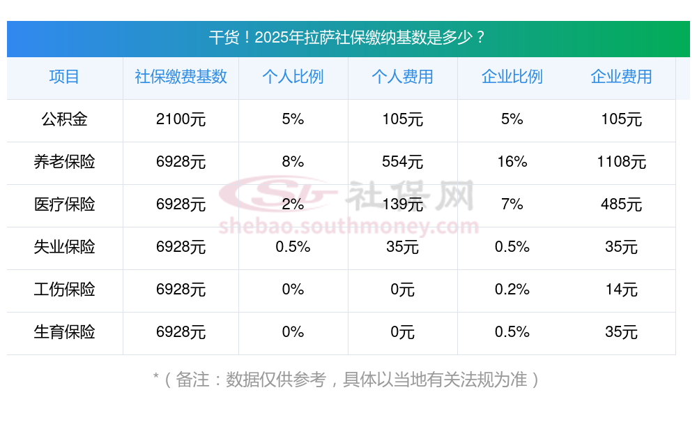 一、据新社通小编了解到,社保缴费基数的确定,先以职工上一年度月平均工资为依据,然后结合当地社会平均工资上下限(60%-300%)的范围进行调整。 目前,拉萨社保缴费基数为:6927.60,个人费用约为:554.208元,企业费用约为:1108.416元。