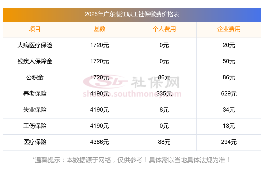 一、2025年广东湛江职工社保缴费基数是多少钱一个月?职工社保缴纳标准是多少?