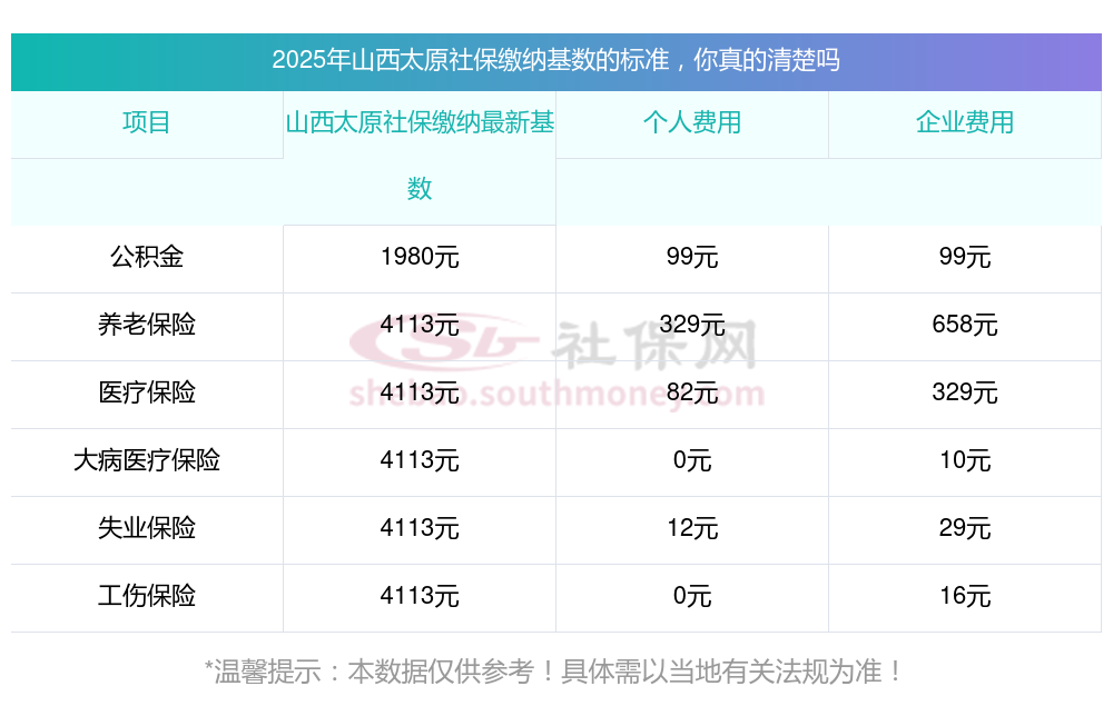 一、据新社通小编了解到,社保缴费基数的确立,主要依靠职工上一年度月平均工资,再依据当地社会平均工资60%-300%的上下限进行调整。 目前,山西太原社保缴费基数为:4113.00,个人费用约为:329.04元,企业费用约为:658.08元。