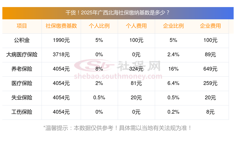 广西北海缴费社保比例一览 社保公司和个人各交多少?下表是2024-2025年广西北海社保费用明细参考,新社通app-社保缴费查询工具提供的最新数据如下: