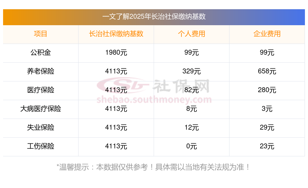 一、据新社通app-查阅了解到,社保基数是根据职工上一年1月至12月所有工资性收入所得的月平均额而定,其用于计算缴纳社会保险费的工资基数。 目前该长治社保的缴费基数为:4113.00,个人费用约为:329.04元,企业费用约为:658.08元。