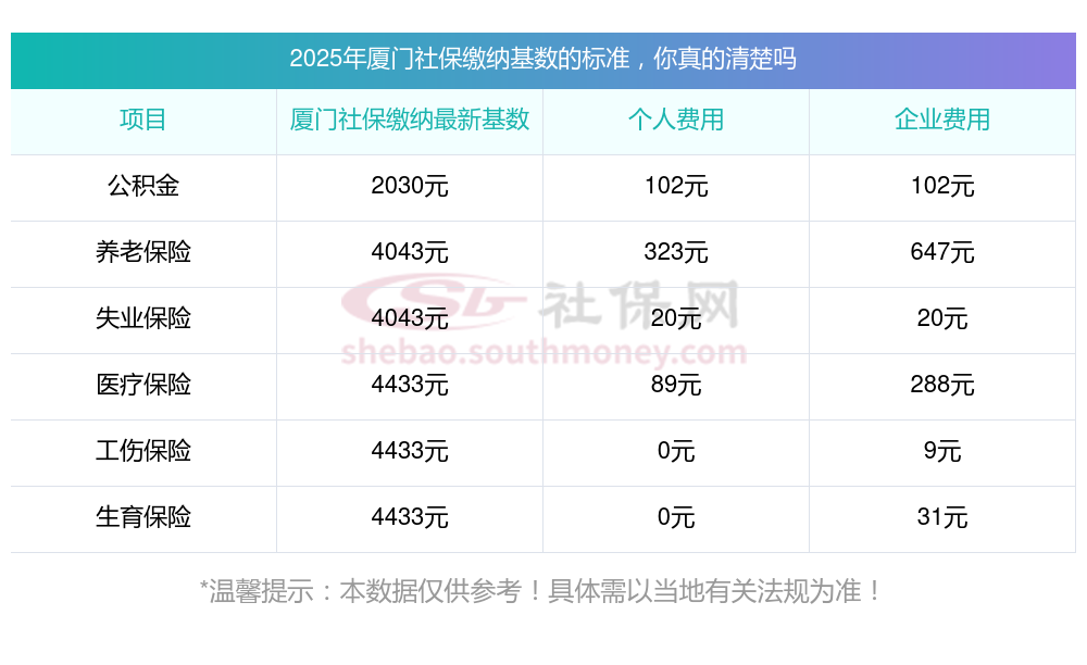 2025年厦门社保缴费基数是多少?2025年厦门社保交多少钱?社保缴费金额的确定与缴费基数、缴费比例,以及当地法规制定的具体法规等因素紧密相关。