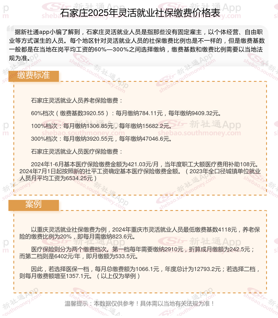 石家庄灵活就业人员基本养老保险缴费基数暂按不低于3920.55元;