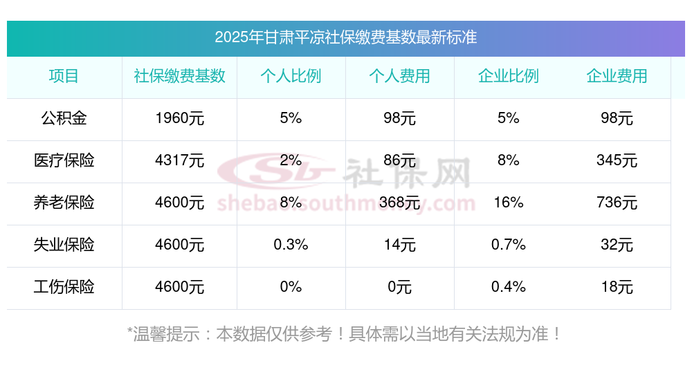 甘肃平凉的社保缴费情况,依据2025年最新的缴费标准,我们可以详细地进行如下说明。这些标准是根据新社通app-社保缴费查询工具提供的数据整理得出的: