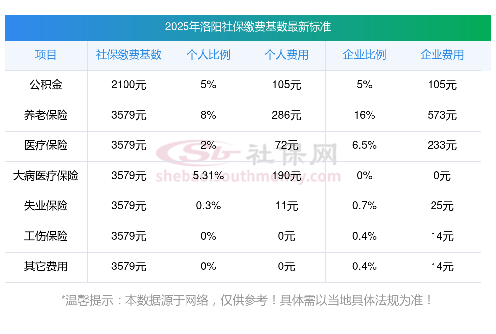 一、据新社通小编了解到,确定社保缴费基数的方法是,依据职工上一年度月平均工资,再结合当地社会平均工资上下限(60%-300%)的范围进行调整。 目前,洛阳社保缴费基数为:3579.00,个人费用约为:286.32元,企业费用约为:572.64元。