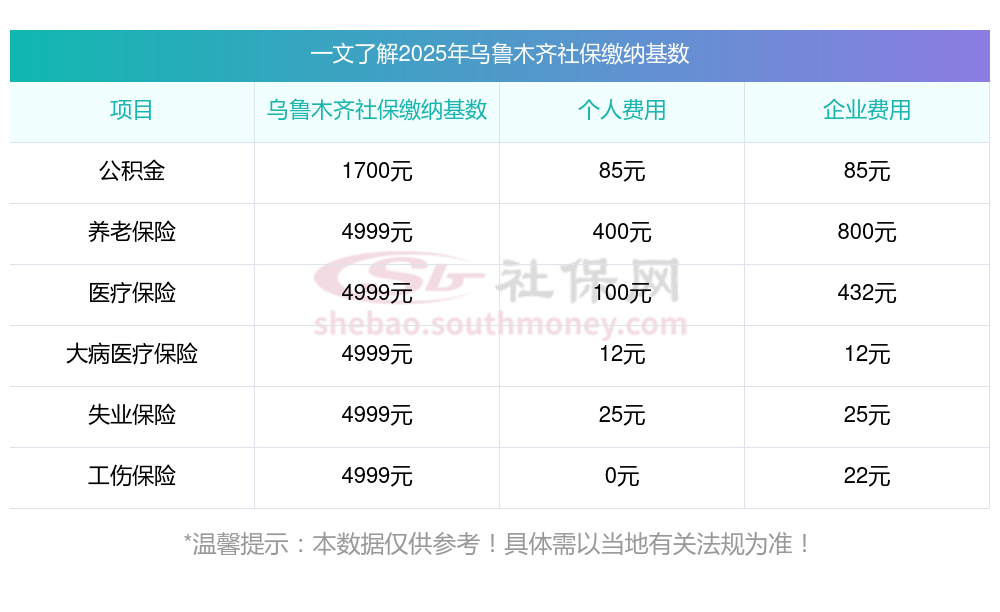据新社通小编了解到,确定社保缴费基数,以职工上一年度月平均工资为主要依据,结合当地社会平均工资60%-300%的上下限范围调整。 目前,乌鲁木齐社保缴费基数为:4999.00,个人费用约为:399.92元,企业费用约为:799.84元。