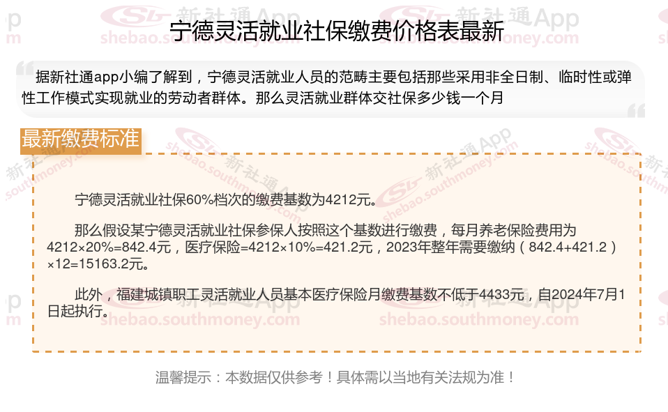 据新社通app数据显示,宁德灵活就业养老保险缴费基数2024-2025年最新标准如下: