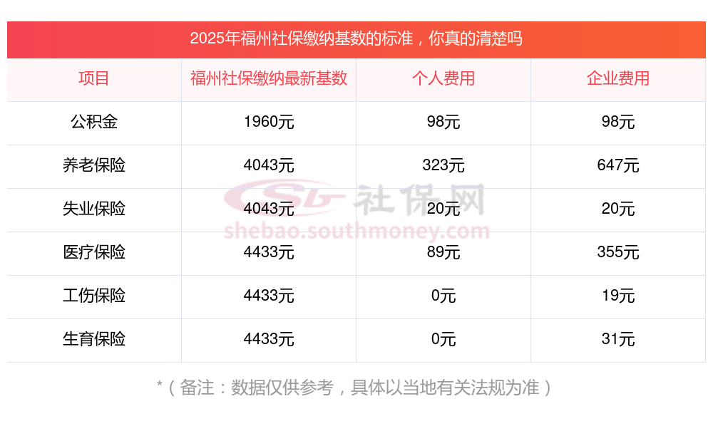 职工上一年度1月至12月的所有工资性收入所得月平均额,用以确定社保基数,而社保基数用于计算缴纳社会保险费的工资基数。 那么,2025年福州社保缴费基数是多少,福州社会险每月交多少钱,下面随新社通app小编一起来了解具体内容。