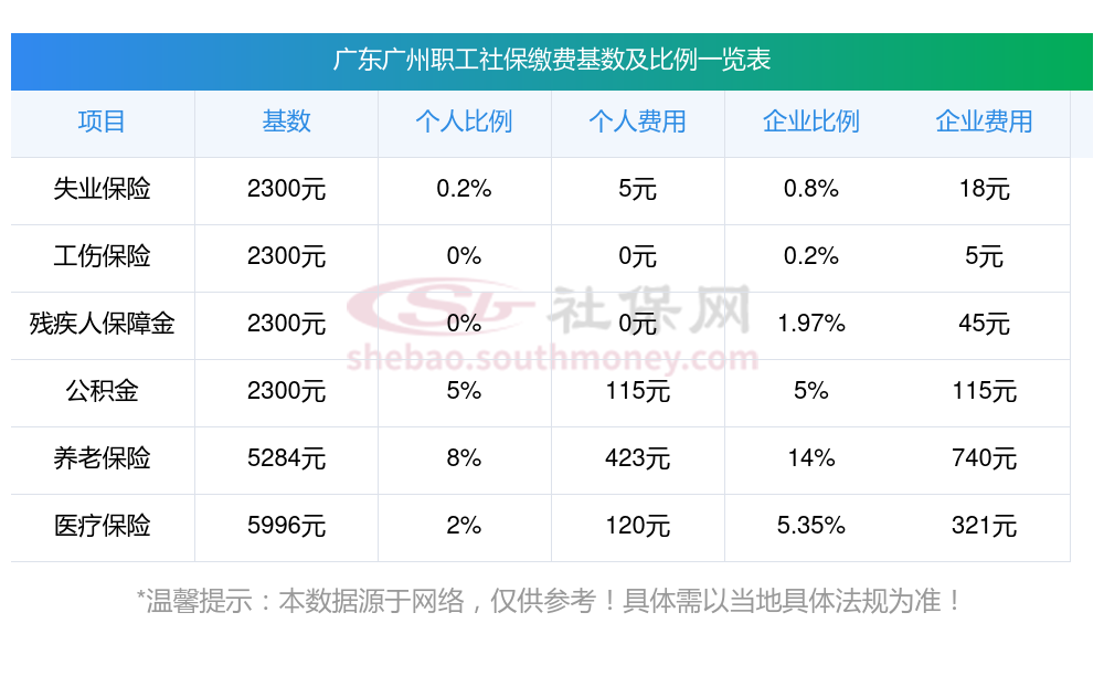 据新社通app显示,广东广州社保缴费基数2025标准,(社保最低一个月要交多少钱)广东广州社保费用如下: