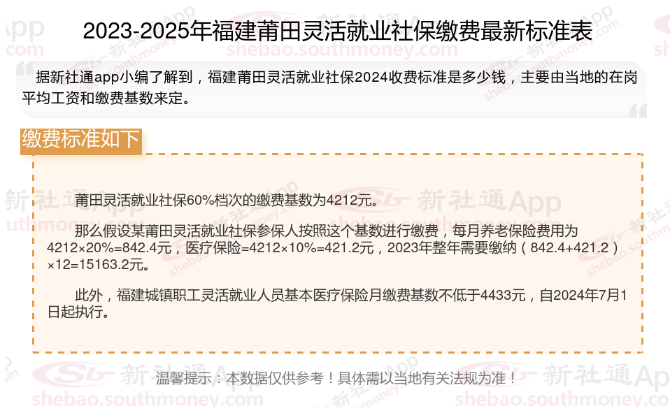 以上就是福建莆田灵活就业社保缴费的全部内容,数据及内容供参考!希望对你有帮助,欢迎关注新社通解锁更多社保专业资讯。