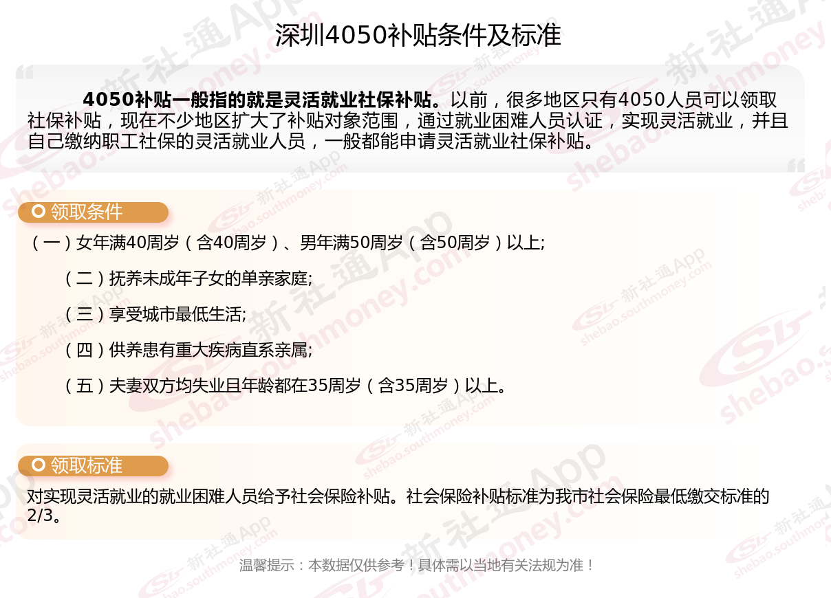 深圳补贴多少钱一个月?深圳灵活就业4050补贴标准: