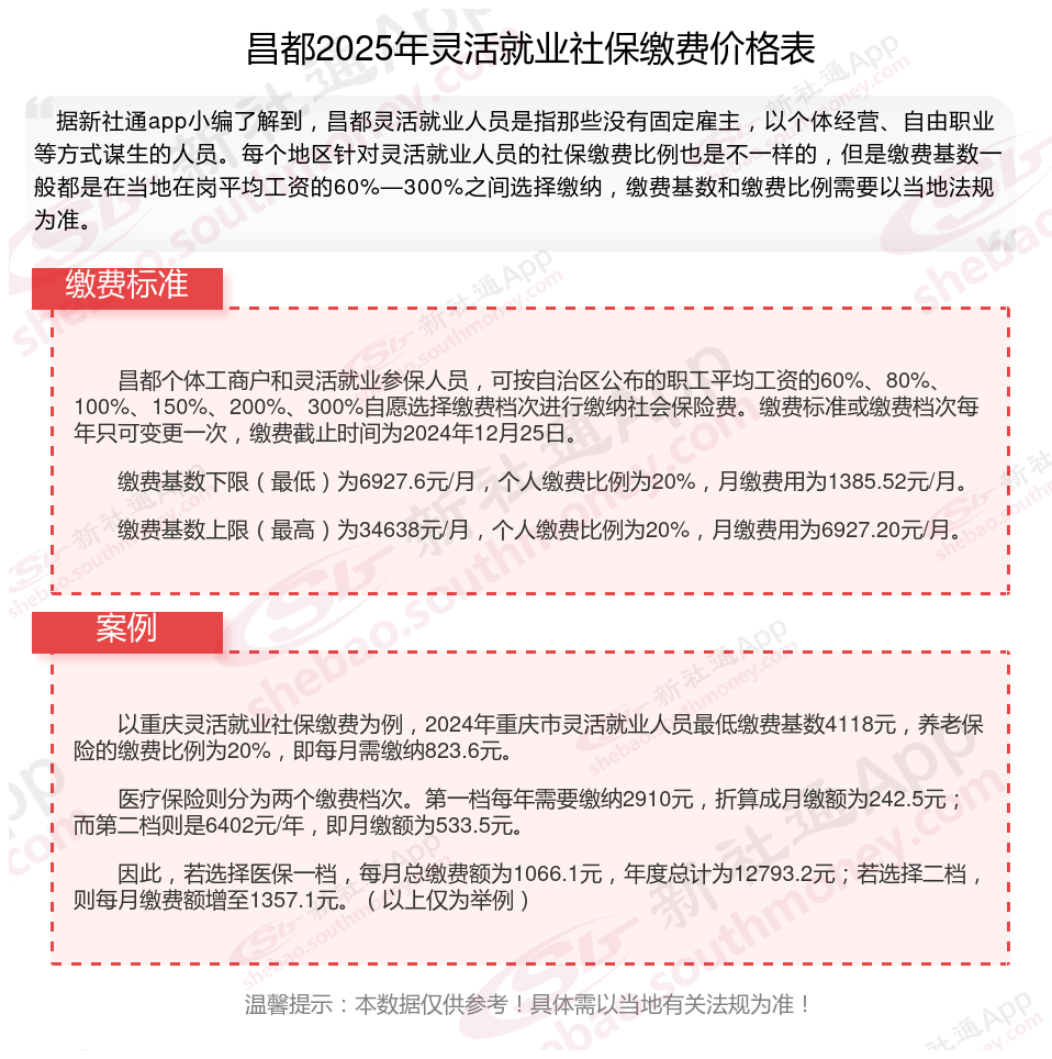 一、2025年昌都灵活就业社保缴费标准,灵活就业社保多少钱一个月?
