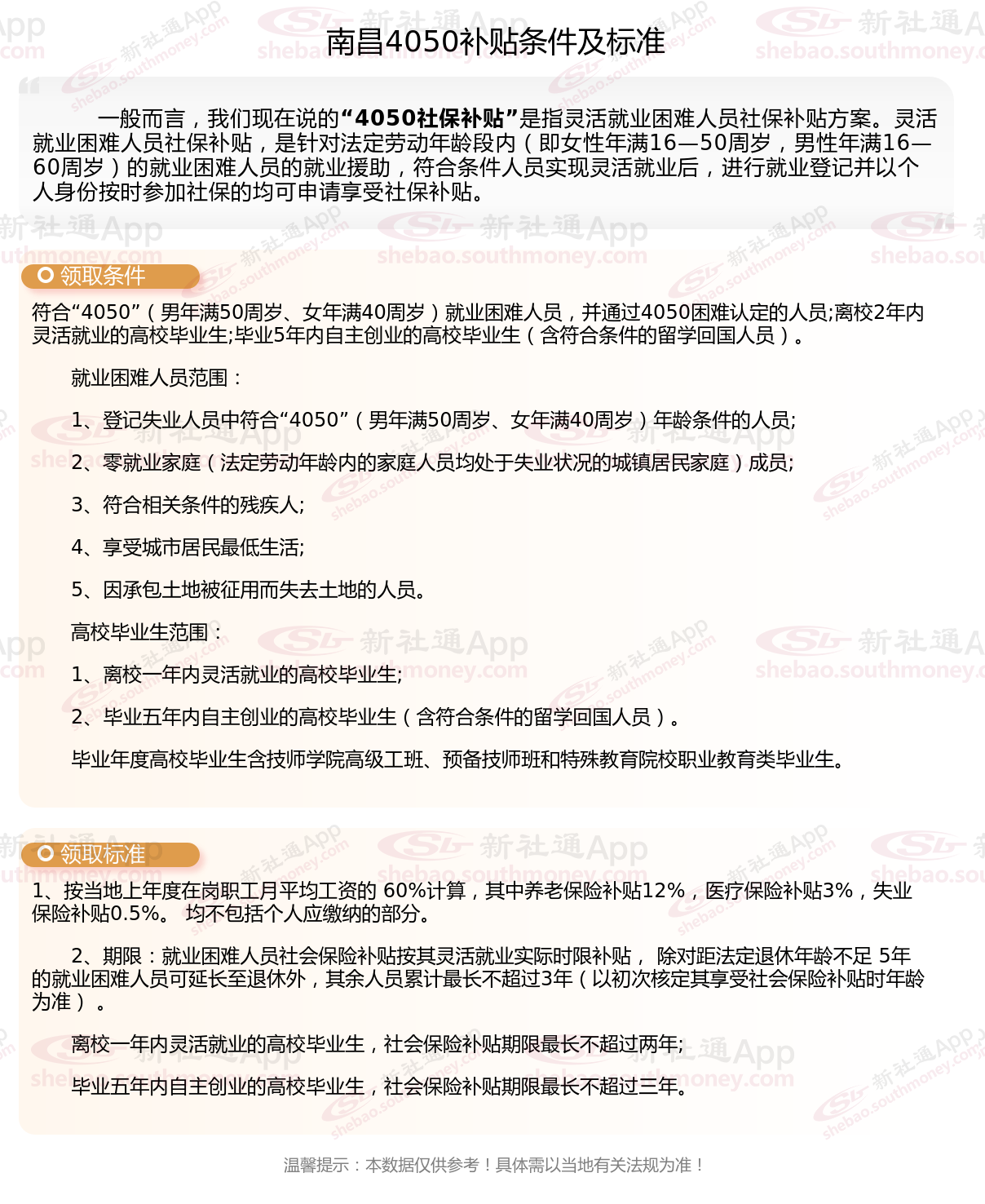 第一、灵活就业社保4050补贴标准是什么样的?2025年南昌4050社保补贴最新多少钱一个月?南昌4050社保补贴如何办理,南昌若想申领4050补贴,主要条件包括以下内容