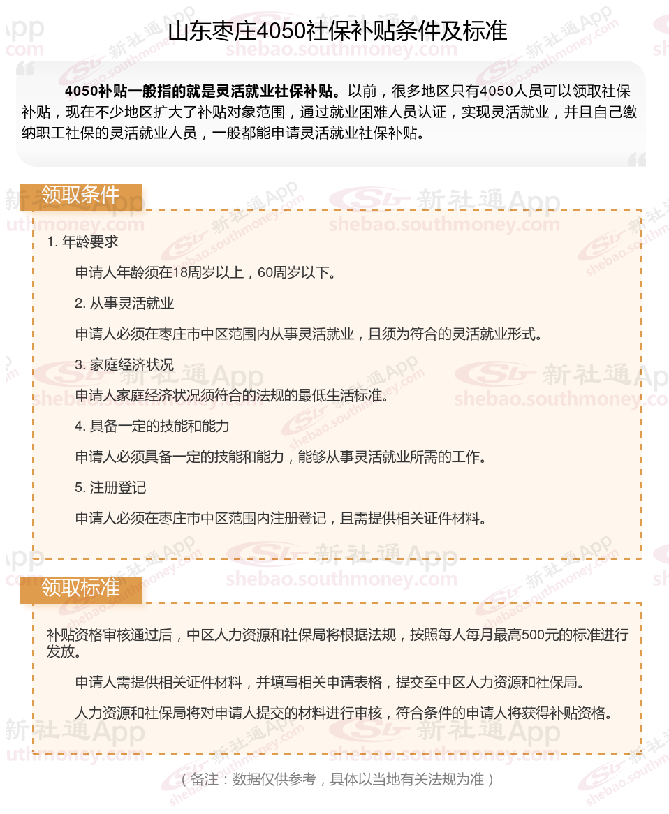 山东枣庄补贴多少钱一个月?山东枣庄灵活就业4050补贴标准: