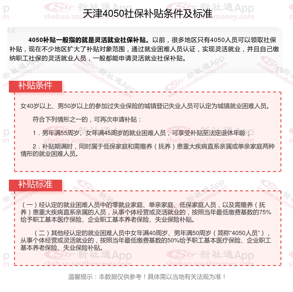第一、天津有4050补贴吗?怎么申请?天津领取4050补贴,需满足如下主要条件
