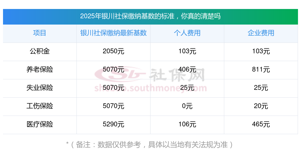 2025年银川社保缴费多少钱?下表是2023-2024年银川社保费用明细参考,新社通app-社保缴费查询工具提供的最新数据如下: