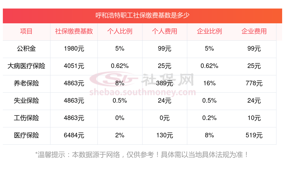 据新社通app显示,呼和浩特社保缴费基数最新消息,呼和浩特职工社保缴费详情如下: