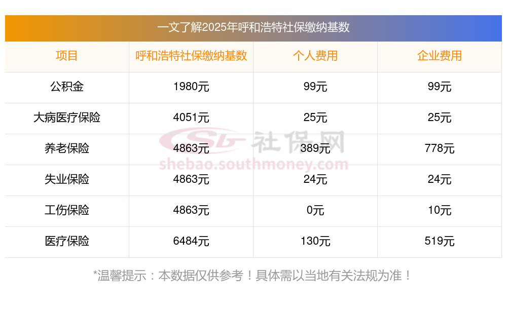 据新社通app显示,呼和浩特社保缴费基数2025标准,(社保最低一个月要交多少钱)呼和浩特社保费用如下: