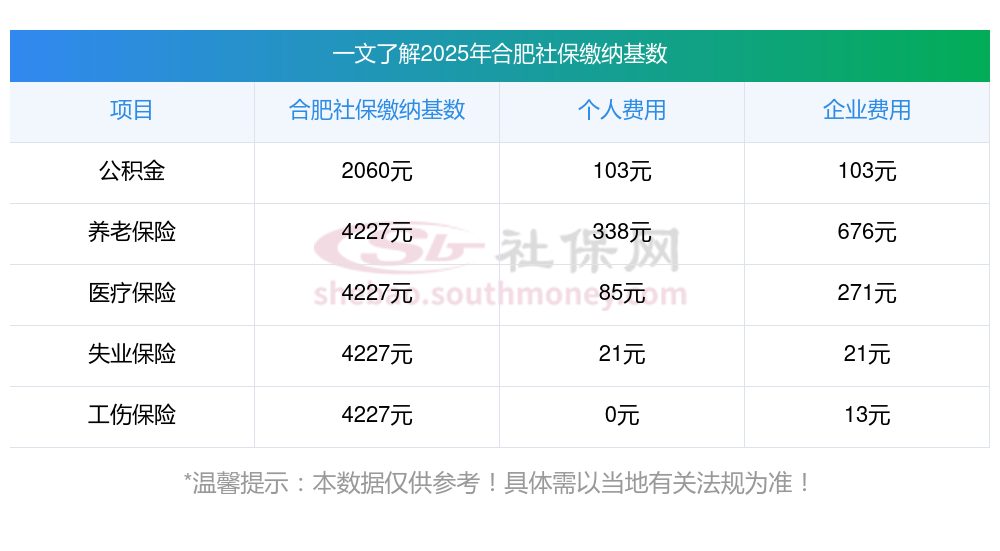 一、据新社通小编了解到,以职工上一年度月平均工资为主要参考,按照当地社会平均工资上下限(60%-300%)的范围,对社保缴费基数进行确定与调整。 目前,合肥社保缴费基数为:4227.00,个人费用约为:338.16元,企业费用约为:676.32元。
