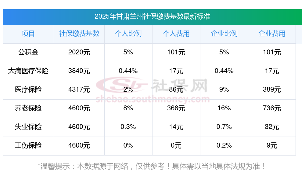 直白定义,社保缴纳是单位与个人遵循法规,向社会保险系统按时足额缴纳费用的行动。接下来看看,2025年甘肃兰州社保个人缴费多少钱呢?2025年甘肃兰州社保缴费基数最新标准公布?,如下: