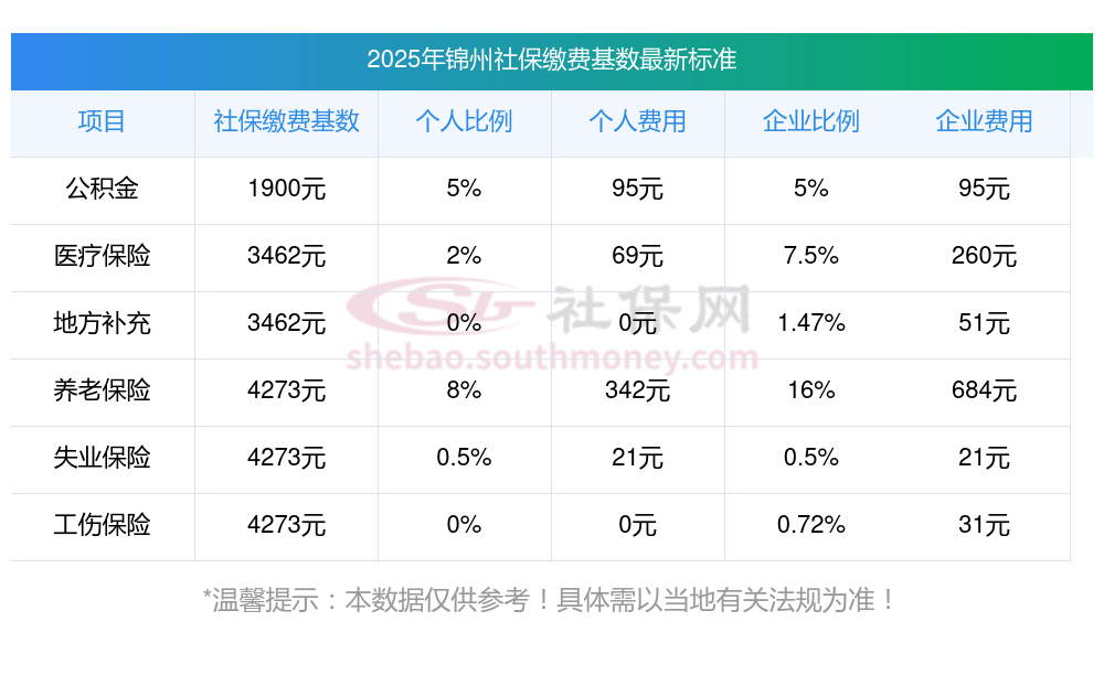 据新社通app显示,锦州社保缴费基数2025年标准,(社保最低一个月要交多少钱)锦州社保费用如下: