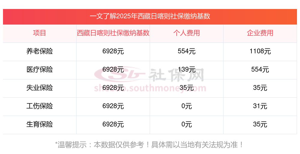 据新社通app小编了解到,2025年西藏日喀则社保缴费基数参照为3579.00,西藏日喀则社保缴费明细如下: