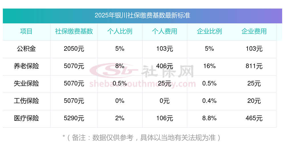 据新社通app小编了解到,2025年银川社保缴费基数参照为3579.00,银川社保缴费明细如下: