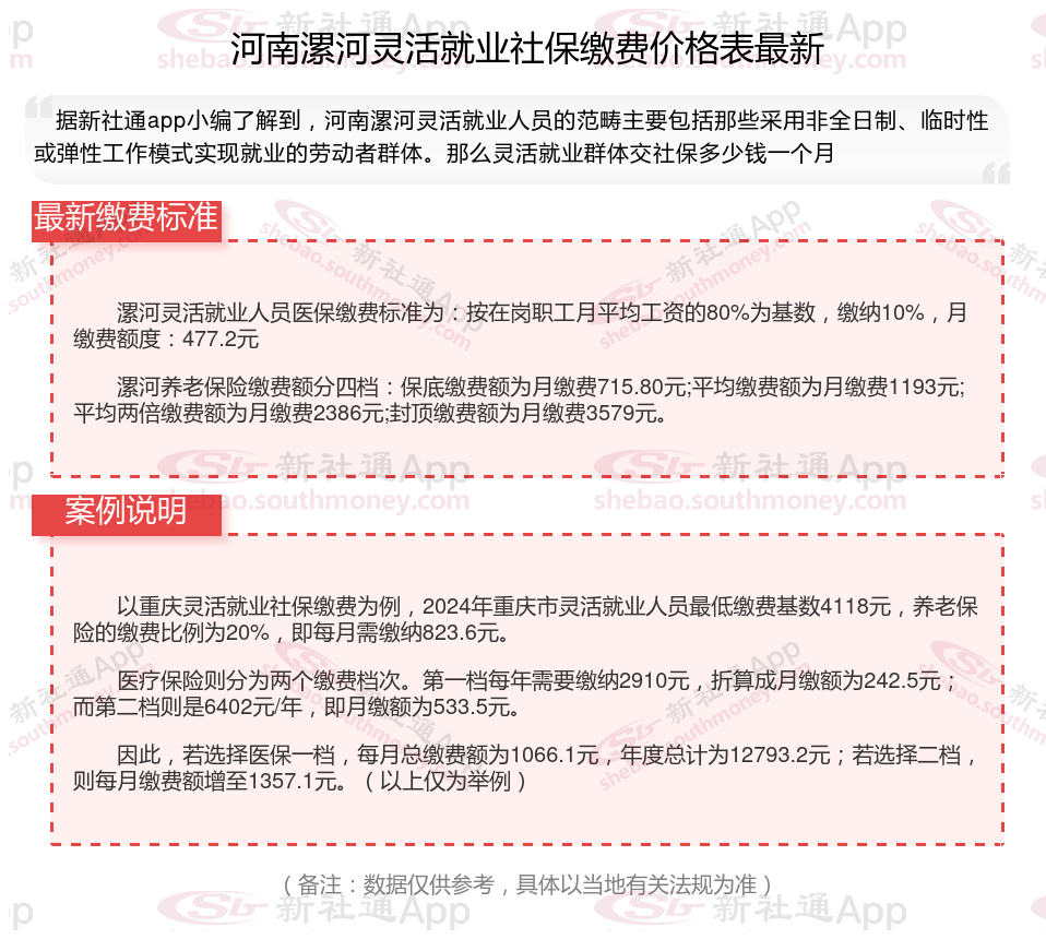 据新社通app数据显示,河南漯河灵活就业养老保险缴费基数2024-2025年最新标准如下: