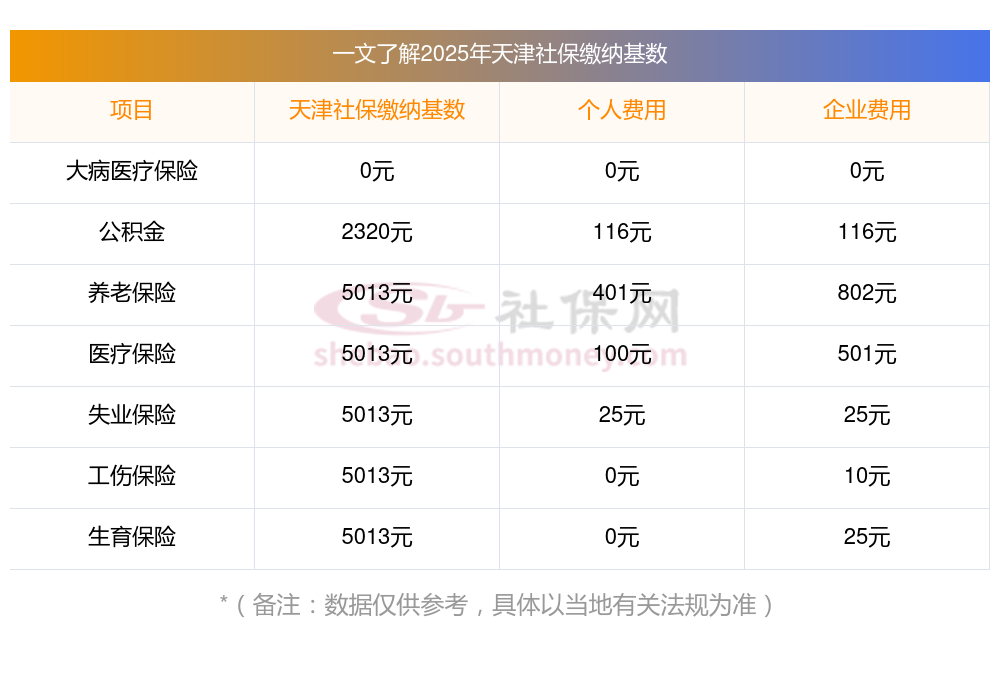 一、据新社通小编了解到,以职工上一年度月平均工资为主要参考,按照当地社会平均工资上下限(60%-300%)的范围,对社保缴费基数进行确定与调整。 目前,天津社保缴费基数为:5013.00,个人费用约为:401.04元,企业费用约为:802.08元。
