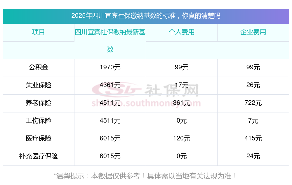2025年四川宜宾社会养老缴纳基数及比例一览表 四川宜宾个人缴纳社保每月要多少钱?社保缴费金额由缴费基数、缴费比例,以及当地围绕社保制定的具体法规等多个因素共同影响确定。