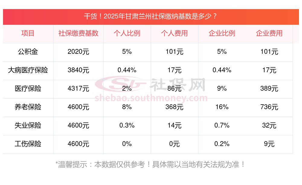甘肃兰州社保费用个人和公司的承担比例如下: