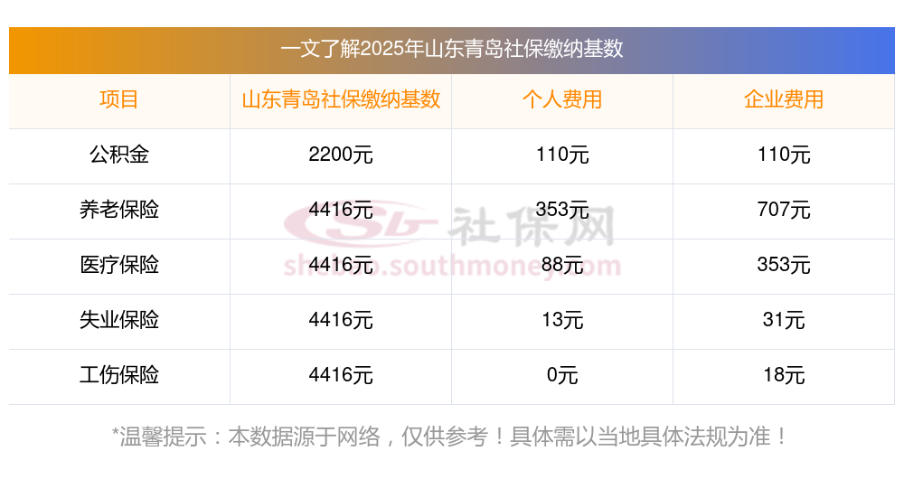 一、据新社通app-查阅了解到,以职工上一年度1月至12月所有工资性收入所得的月平均额为基准,确定社保基数,此基数用于计算缴纳社会保险费的工资基数。 目前该山东青岛社保的缴费基数为:4416.00,个人费用约为:353.28元,企业费用约为:706.56元。