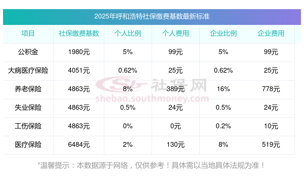 一、2025年呼和浩特职工社保缴费基数是多少钱一个月?职工社保缴纳标准是多少?