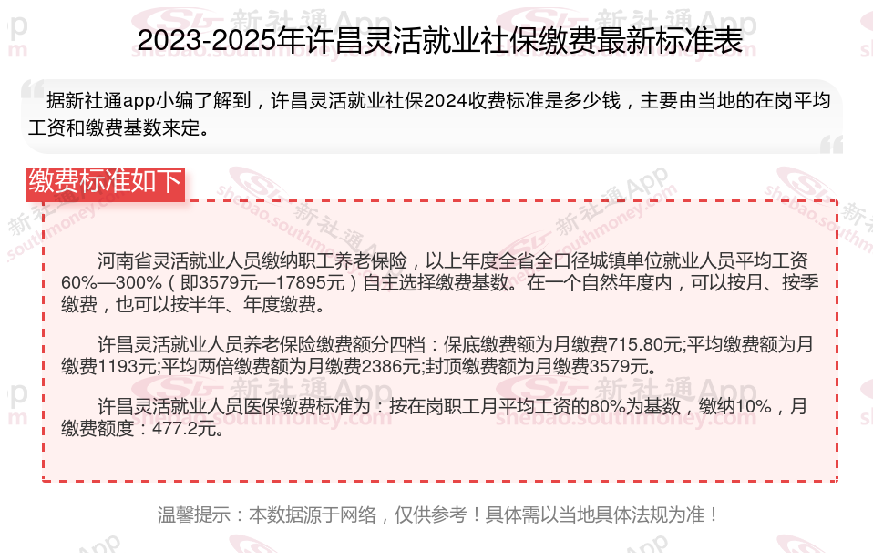 据新社通app显示,2024-2025年许昌灵活就业人员养老保险的缴费标准: