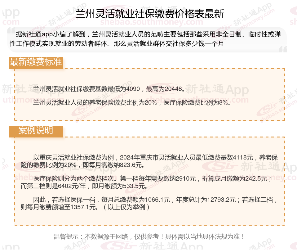 定了!灵活就业人员2024-2025年社保养老缴费基数是多少,医保交多少钱,兰州灵活就业人员社保2025缴费标准一览表
