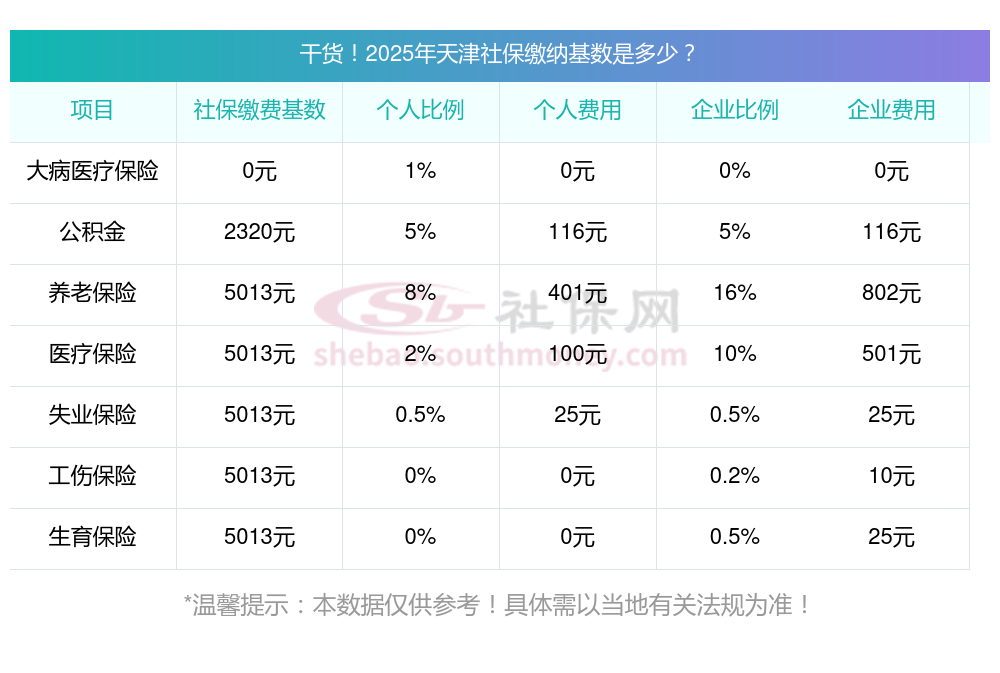 缴费基数:通常为职工月平均工资,但设有上下限(例如2025年天津养老保险基数范围为5013-25065元)。