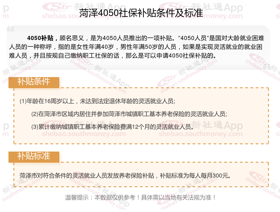 一、2025年菏泽灵活就业4050社保补贴标准和条件是什么