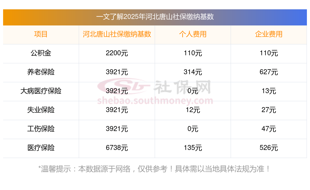 一、据新社通小编了解到,社保缴费基数的确定主要依据职工上一年度的月平均工资,并结合当地社会平均工资的上下限(60%-300%)进行调整。 目前,河北唐山社保缴费基数为:3920.55,个人费用约为:313.644元,企业费用约为:627.288元。