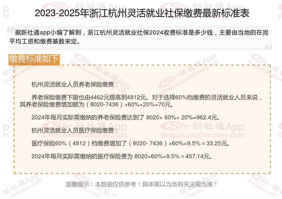以上就是带来浙江杭州灵活就业社保缴费标准相关知识,内容供参考,希望对你有帮助,欢迎关注/下载新社通app解锁更多社保专业资讯。