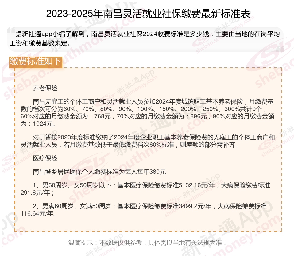 以上就是南昌灵活就业社保缴费的全部内容,数据及内容供参考!希望对你有帮助,欢迎关注新社通解锁更多社保专业资讯。