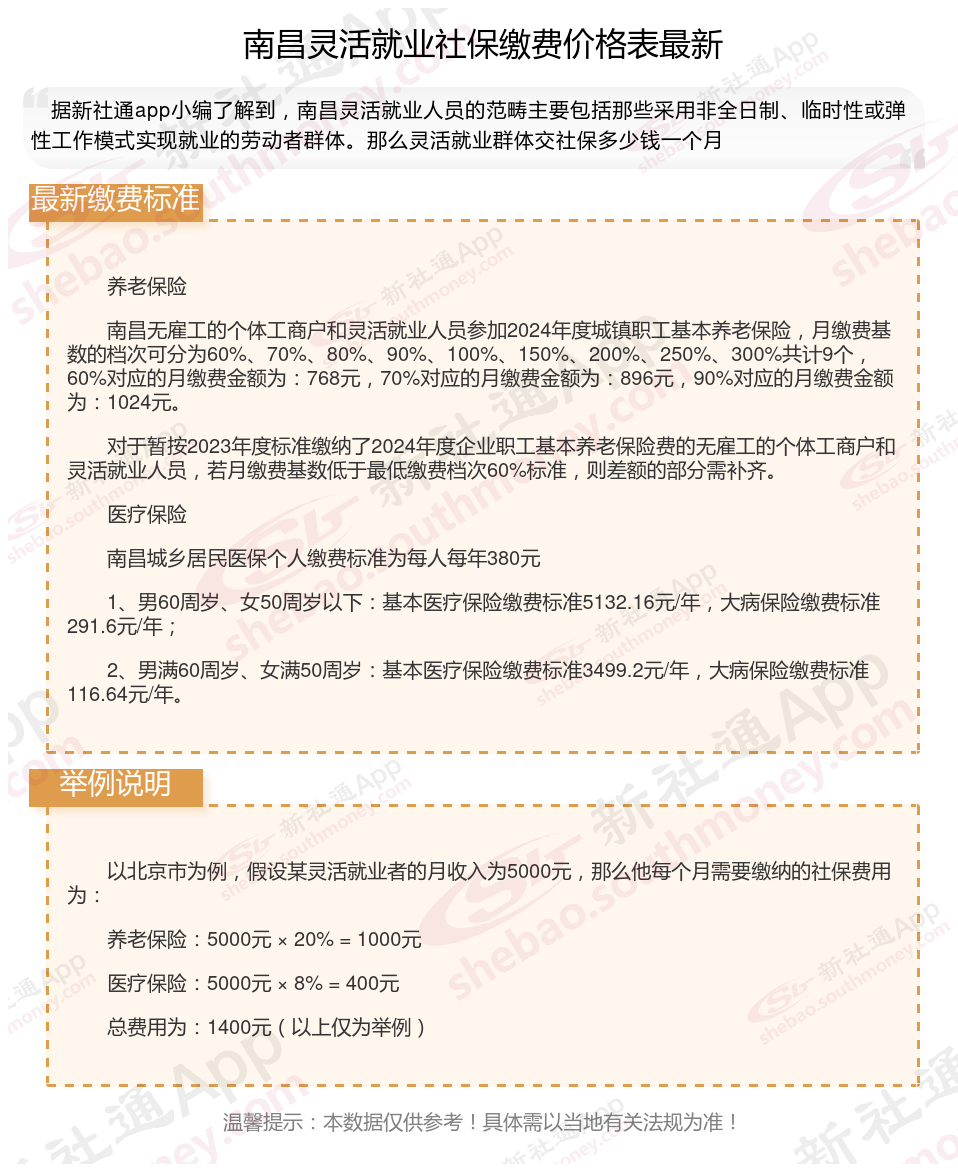 据新社通app数据显示,南昌灵活就业养老保险缴费基数2024-2025年最新标准如下: