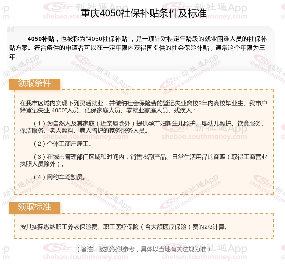 重庆补贴多少钱一个月?重庆灵活就业4050补贴标准: