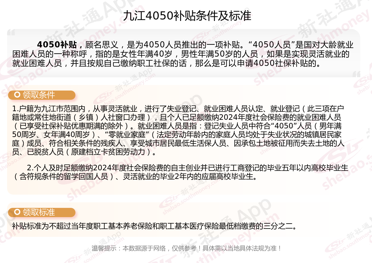 一、2025年九江4050社保补贴标准及条件来了