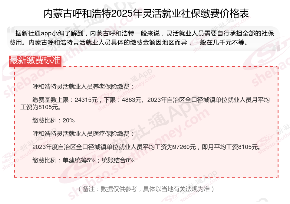 2025年灵活就业人员社保缴费标准,灵活就业社保养老每月交多少?内蒙古呼和浩特灵活就业社保每月交多少钱?