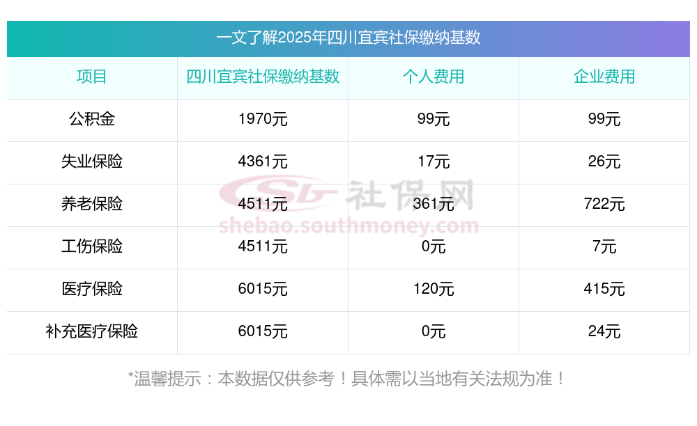 一、据新社通小编了解到,职工上一年度月平均工资作为社保缴费基数确定的主要参考数据,再结合当地社会平均工资60%-300%的上下限来调整。 目前,四川宜宾社保缴费基数为:4511.00,个人费用约为:360.88元,企业费用约为:721.76元。