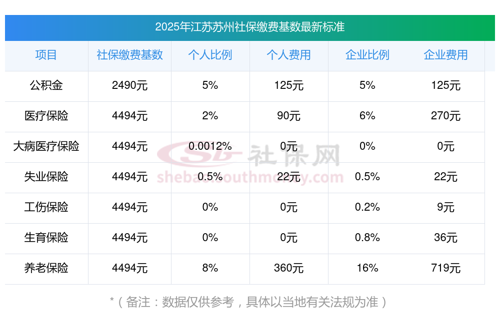 (1)据新社通app-查阅了解到,社保基数是根据职工上一年1月至12月所有工资性收入所得的月平均额而定,其用于计算缴纳社会保险费的工资基数。 目前该江苏苏州社保的缴费基数为:4494.00,个人费用约为:89.88元,企业费用约为:269.64元。