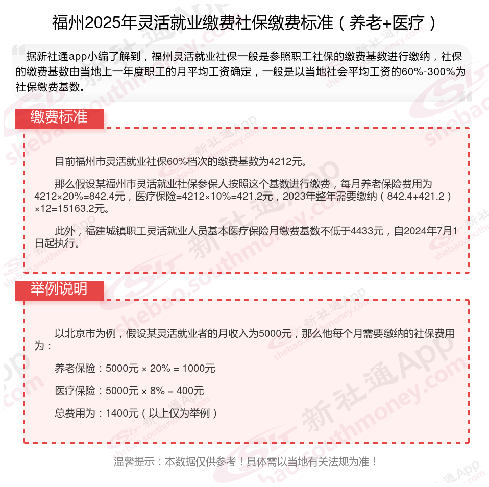 随着经济社会的不断发展,灵活就业群体日益壮大,其社保缴费问题也愈发受到关注。那么2025年福州灵活就业人员社保需要交多少钱,缴费比例是多少?下面随新社通小编一起来看看。