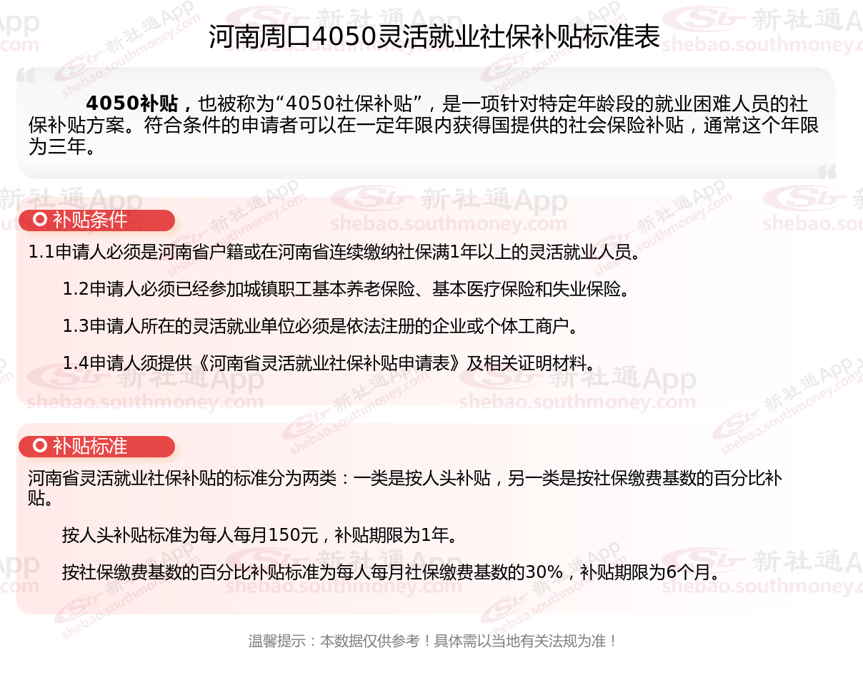 一、2025年河南周口灵活就业4050社保补贴标准最新是多少?