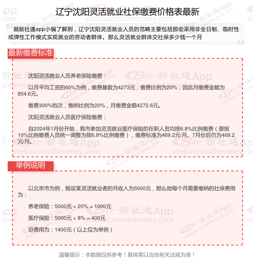 一、2024年辽宁沈阳灵活就业社保缴费标准表 辽宁沈阳灵活就业社保多少钱一个月?
