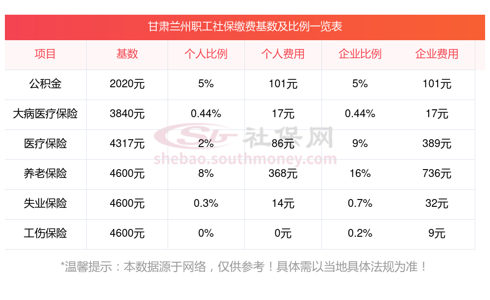 据新社通app显示,甘肃兰州社保缴费基数2025标准,(社保最低一个月要交多少钱)甘肃兰州社保费用如下: